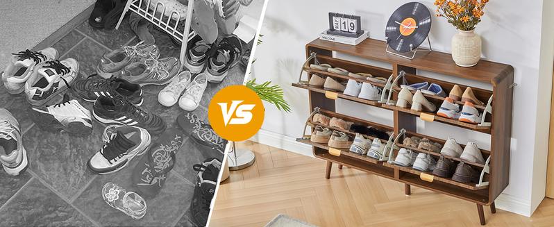 - More Considerate Design: Embrace space-saving elegance with our More Considerate Design Shoe Cabinet. The flap drawer design keeps shoes dust-free and can fit into narrow spaces. The hollow back design ensures optimal air circulation, keeping your footwear fresh and ready to wear.