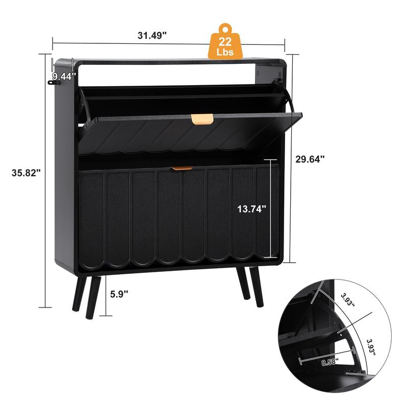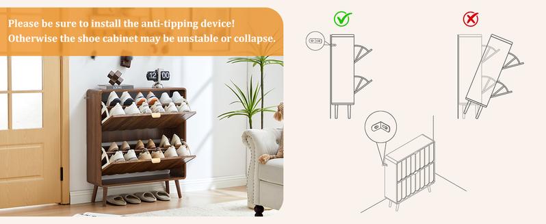 - Durable and Sturdy: Invest in quality that lasts with our Durable and Sturdy Shoe Cabinet. Crafted from high-density MDF, this cabinet ensures long-lasting durability without compromising on style. The thoughtful arc design of the table corners ensures the safety of your pets and children. With an anti-dumping device included, rest assured that your child's safety is our priority. Elevate your space with confidence!