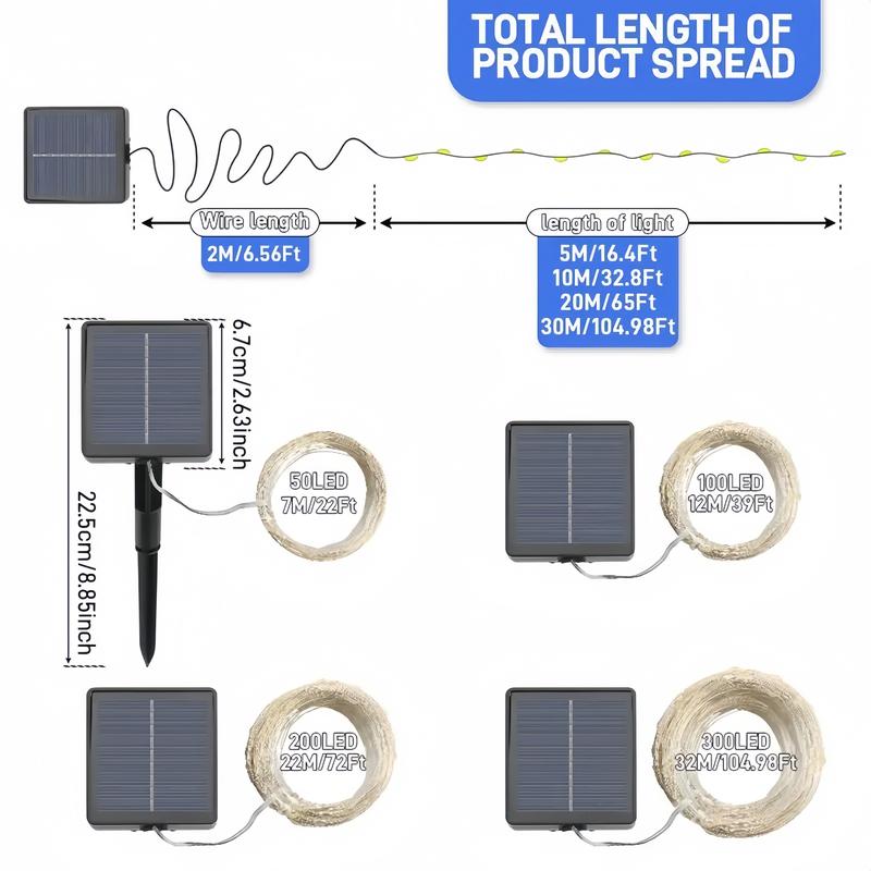 ✨ 2-Pack Solar-Powered Copper Wire String Lights bring a touch of magic to any setting. With 72 feet (200 LEDs) of string lights, you get a vibrant display. Perfect for outdoor gardens, parties, weddings, courtyards, Halloween, Christmas, and camping. These fairy lights offer 8 modes for versatile lighting options. Transform your space effortlessly with this essential set.