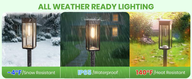 【IP65 waterproof and all-weather】Our outdoor walkway solar lights adopt high-quality ABS shell, which can provide normal lighting in harsh conditions such as heavy snow, heavy rain, frost, etc.